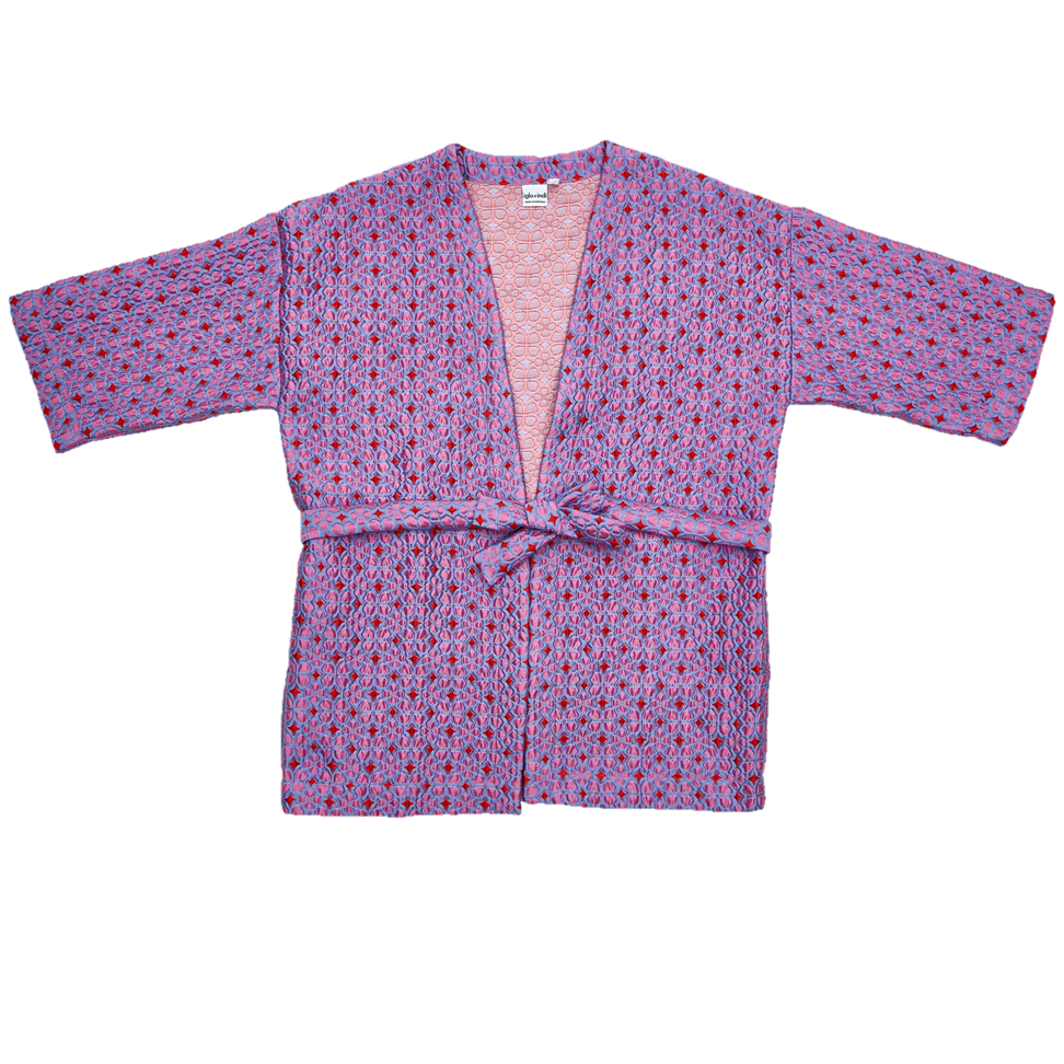 BEAUTIFUL KIMONO WITH BELT IN PURPLE WITH LILAC + RED HEARTS